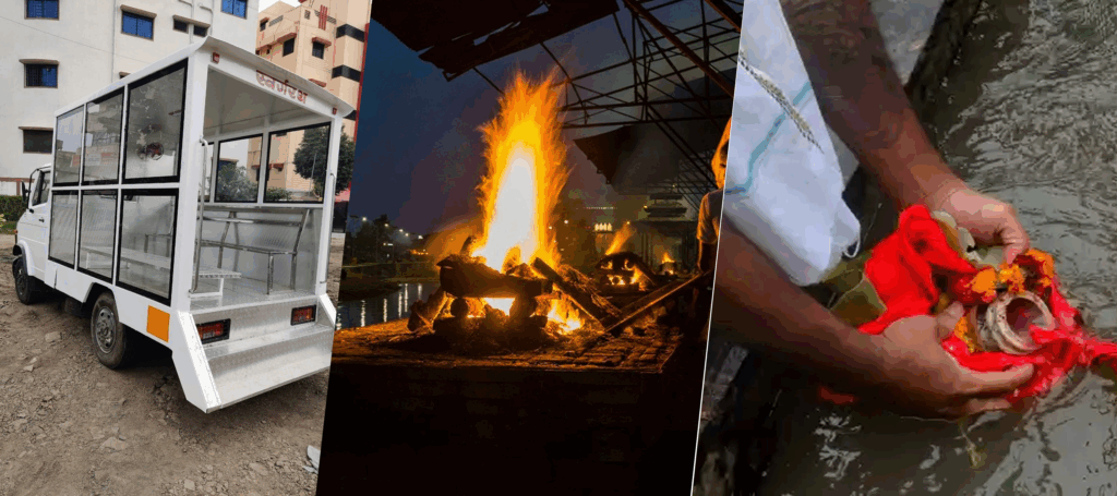 Traditional Hindu last rites with Pandit, Samagri, and ritual coordination.